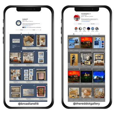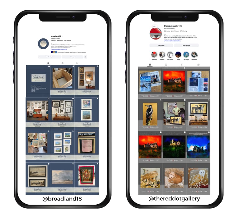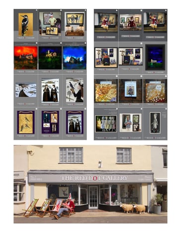 Shane has worked with Colin, the Red Dot Gallery owner, to create a classy yet fun grid for the social media account. Shane films the owner doing a regular 'skit' wearing new hat each time from the local charity shop - with seaside postcard style 'gossip' taking the art world seriousness away from the gallery setting, but still with high class design and graphics to appeal to the demographic that frequents the premises.