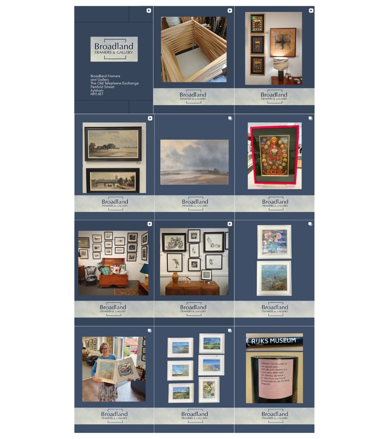 Broadland Gallery and Framers is a high class framing establishment in Norfolk. Catering to artists and galleries putting on exhibitions that need to be uniform and coherent, to customers enjoying their artwork and wanting exciting neon frames to ping from their walls.
