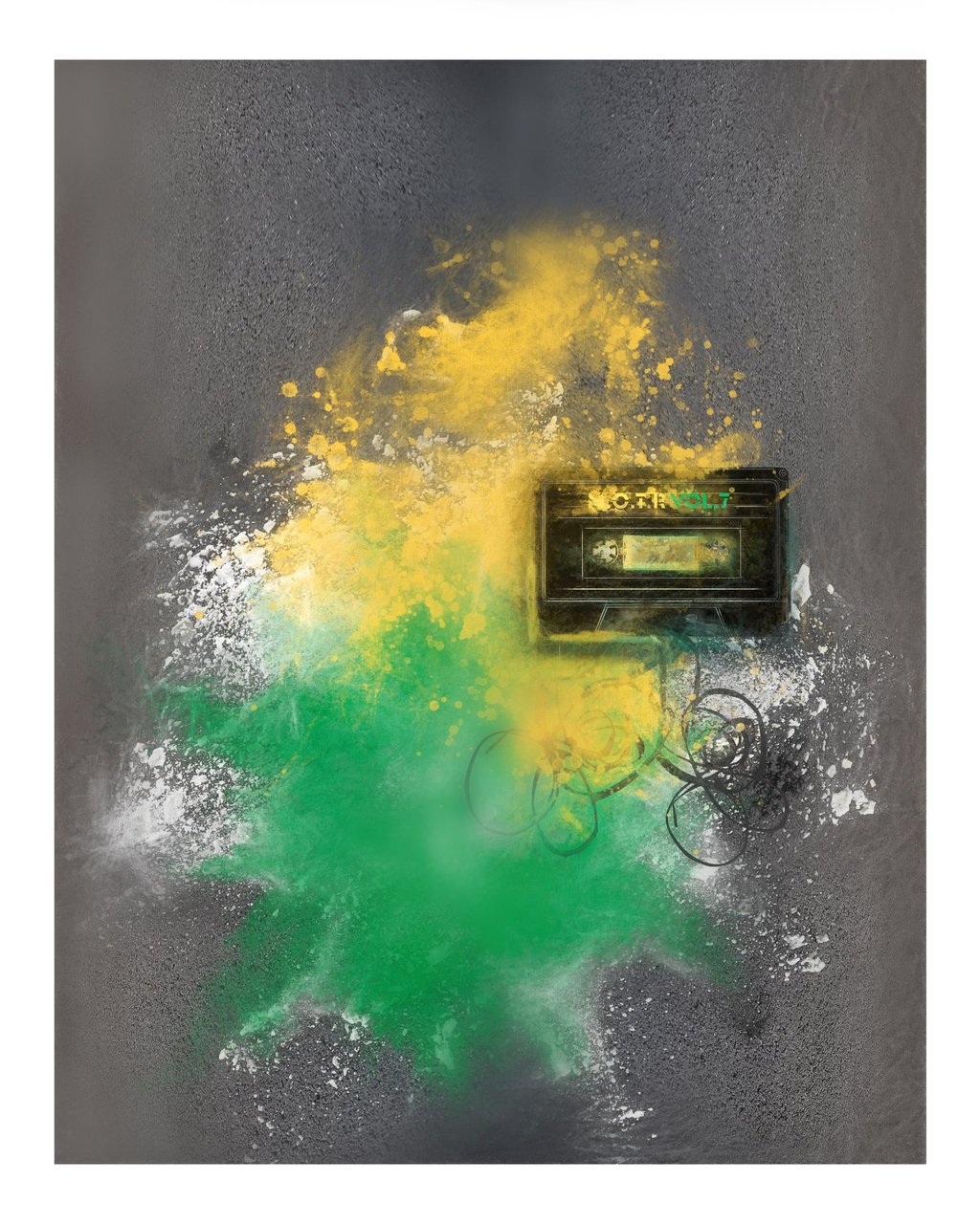 Between 1988 and 2005, while travelling to gigs or working at them – if I found a cassette tape sprawled out and discarded on the side of the road – I'd use the tape as a stencil and create a middle-of-the-road artwork. The band or festival I was going to didn’t matter; the music on the tape didn’t matter. I just left a small, semi-permanent, stencilled artwork in the ‘middle of the road'. I did this 23 times – then ended the project.